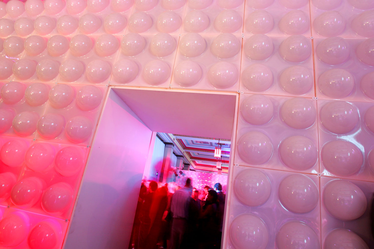 White or red domed wall panels.